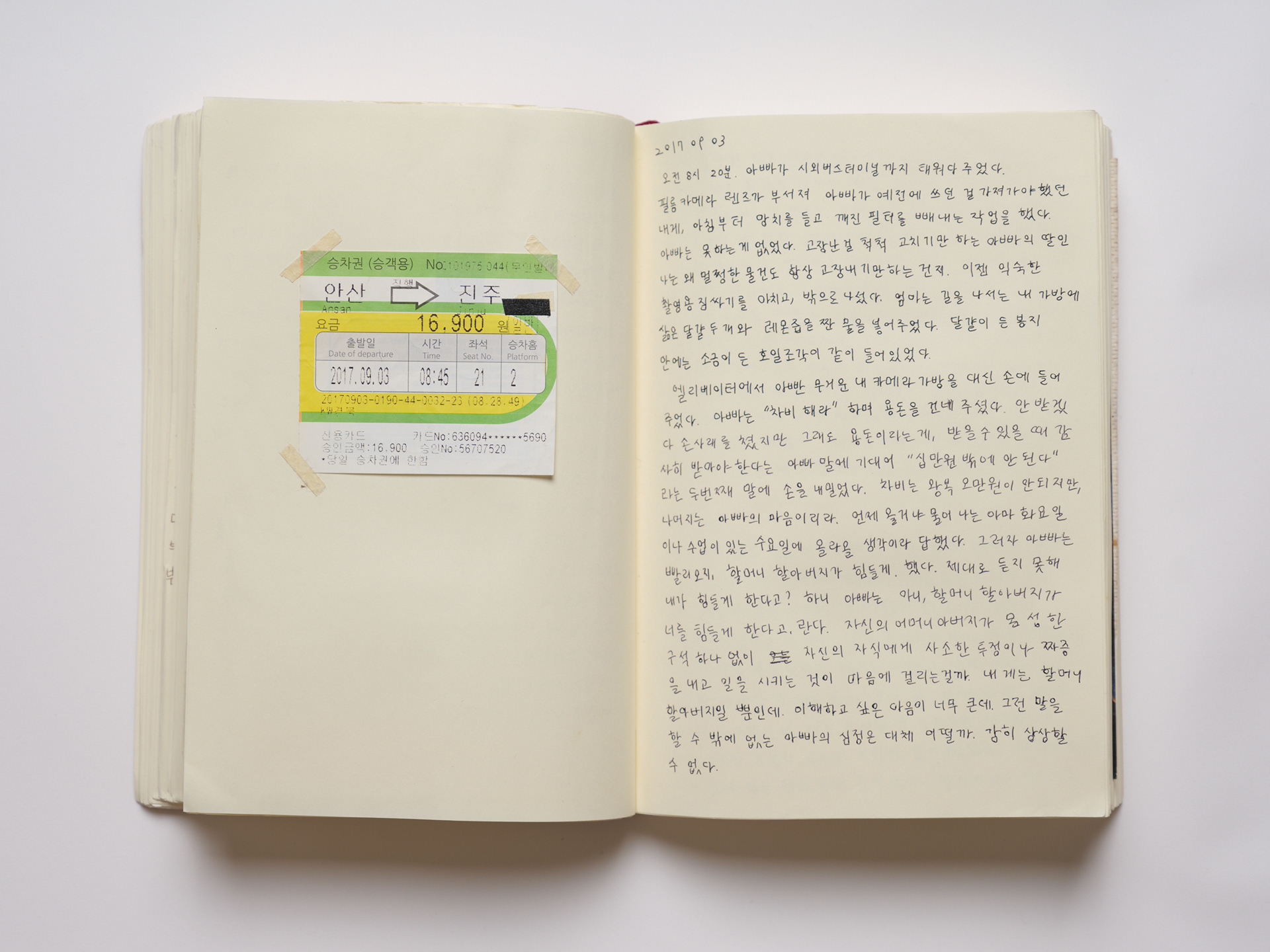 In March 2017, after she was diagnosed with Parkinson's disease, I felt a profound responsibility to document her life, making regular visits to her home in Jinju. Initially, I was driven by an obsessive need to capture everything around her. But I soon realized this was merely a way to soothe my own anxieties, not to truly see her.